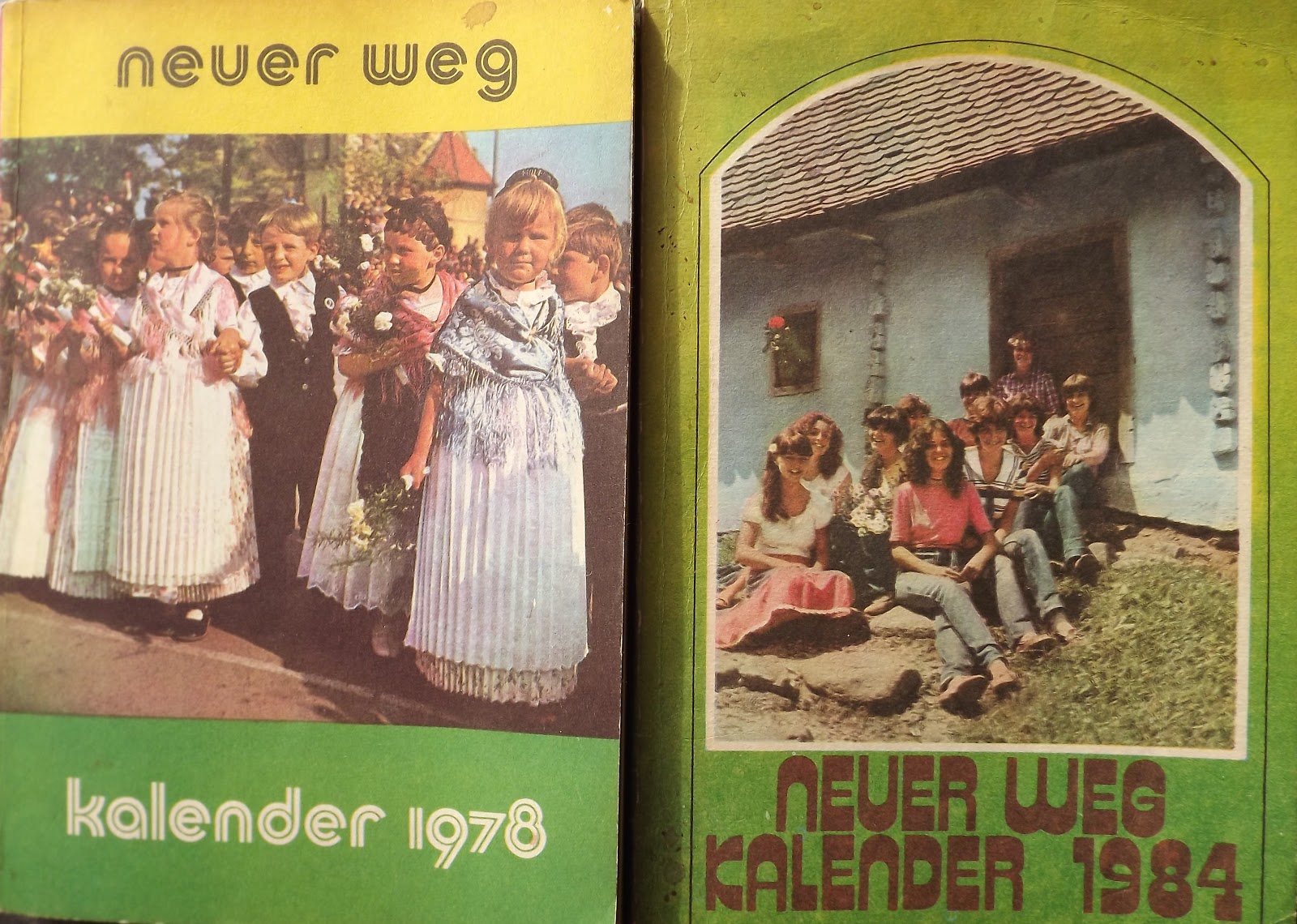 Abbildung Nr. 16, 17, 18. 19: KP-Chef Ceaușescu und der Standpunkt seines Genossen. Der Standpunkt des Partei-Lobhudlers in „Neuen Weg- Kalender“ und der Genosse Richard Wagners, der überaus böse Despot Ceaușescu – in besseren Tagen! Dieser kleine Stammelnde (frei nach Herta Müller) war der Chef! Die Parolen von gestern, die man heute gerne vergessen will, weil sie den Opportunismus und die Bereitschaft zur geistigen Prostitution – hier ist alles in ordnung - dokumentieren.